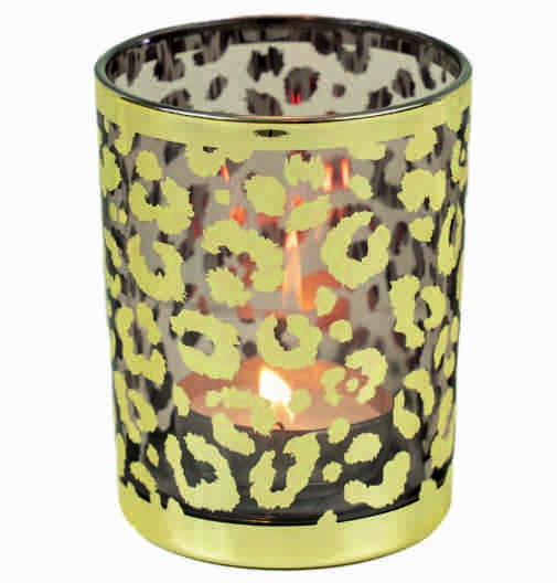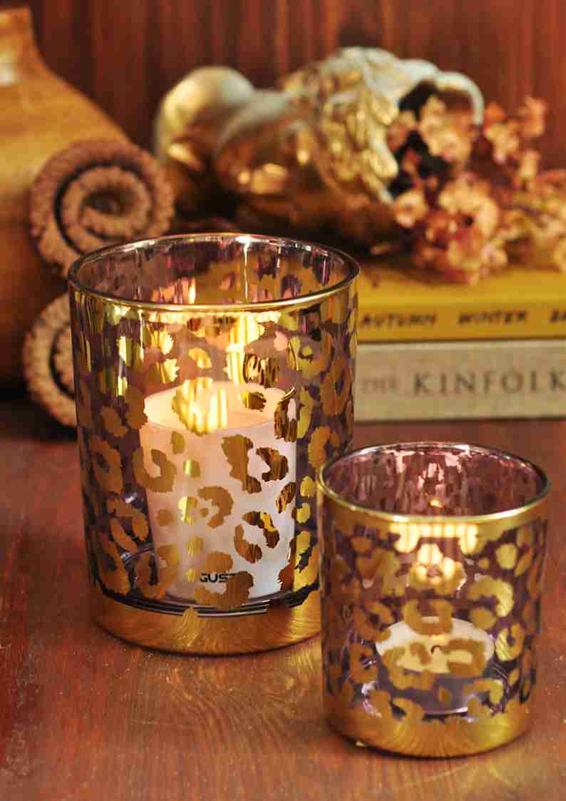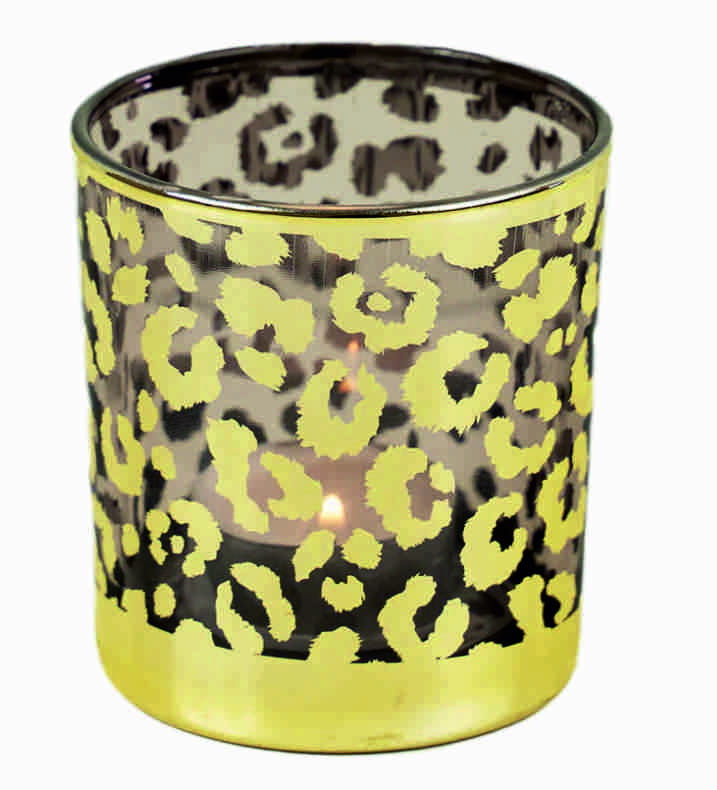 Lampiony ze szkła w złote lamparcie cętki Leopard Gold