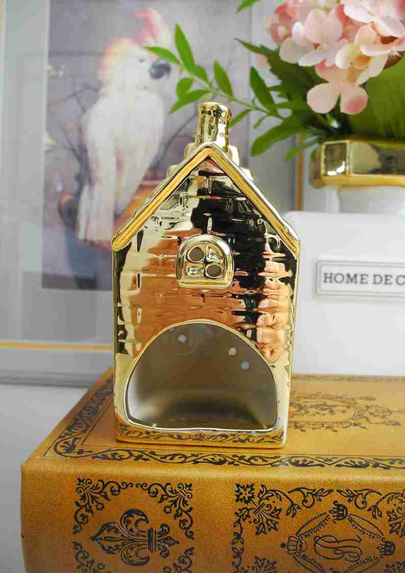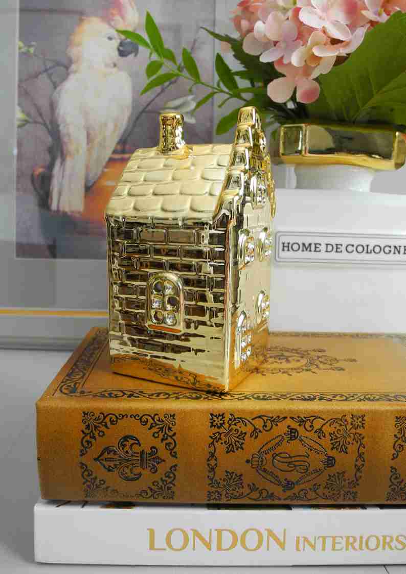 Lampion ceramiczny złoty domek AMSTERDAM