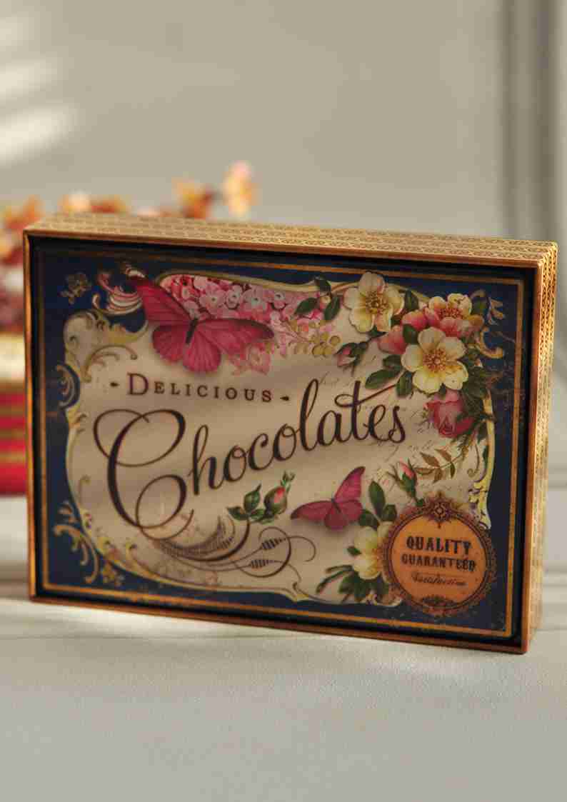 Puszka w stylu vintage DELICIOUS CHOCOLATES to nie tylko pojemnik na pyszności, ale także element dekoracyjny, który doskonale wpisuje się w klimat dawnego świata. To idealny prezent dla tych, którzy cenią sobie nie tylko smak, ale także estetykę i historię czekolady.