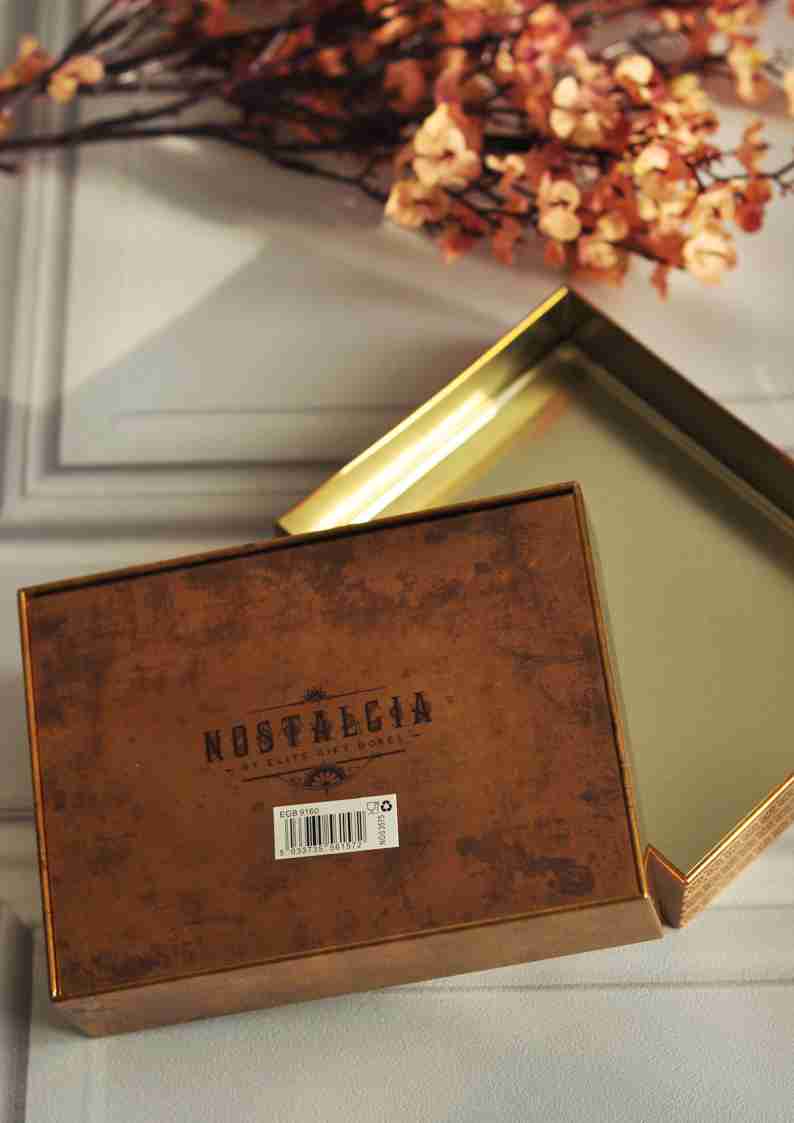 W centralnej części puszki widnieje subtelny, stylizowany napis DELICIOUS CHOCOLATES, nawiązujący do tradycji i smaku, który kryje się wewnątrz. Otwierając pudełko, dostrzeżemy, że wnętrze jest równie starannie zaprojektowane i utrzymane w kolorze starego złota. Każda czekolada jest starannie wykonana, a ich kształty i wzory nawiązują do retro estetyki, co sprawia, że są nie tylko pyszne, ale też piękne wizualnie.