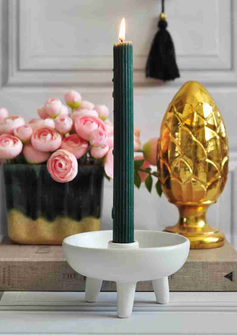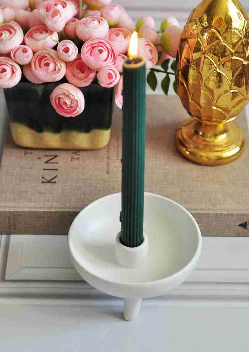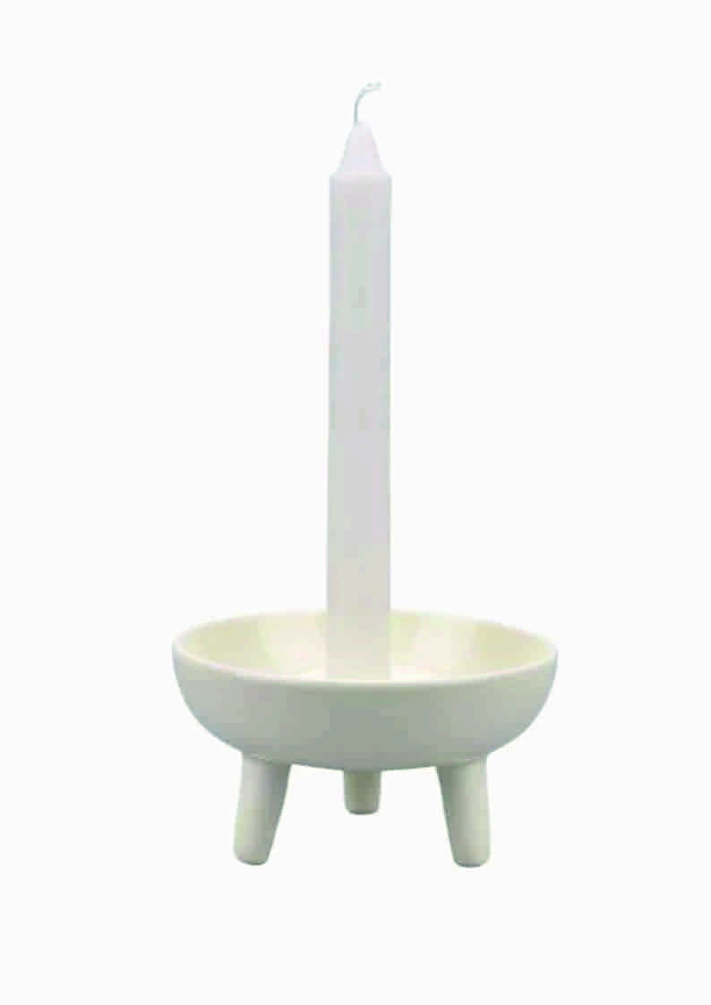 Świecznik z kamionki w kolorze białym na jedną świecę - White