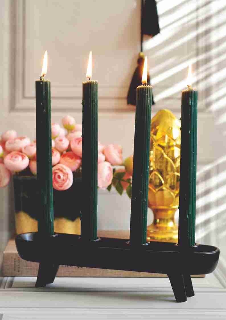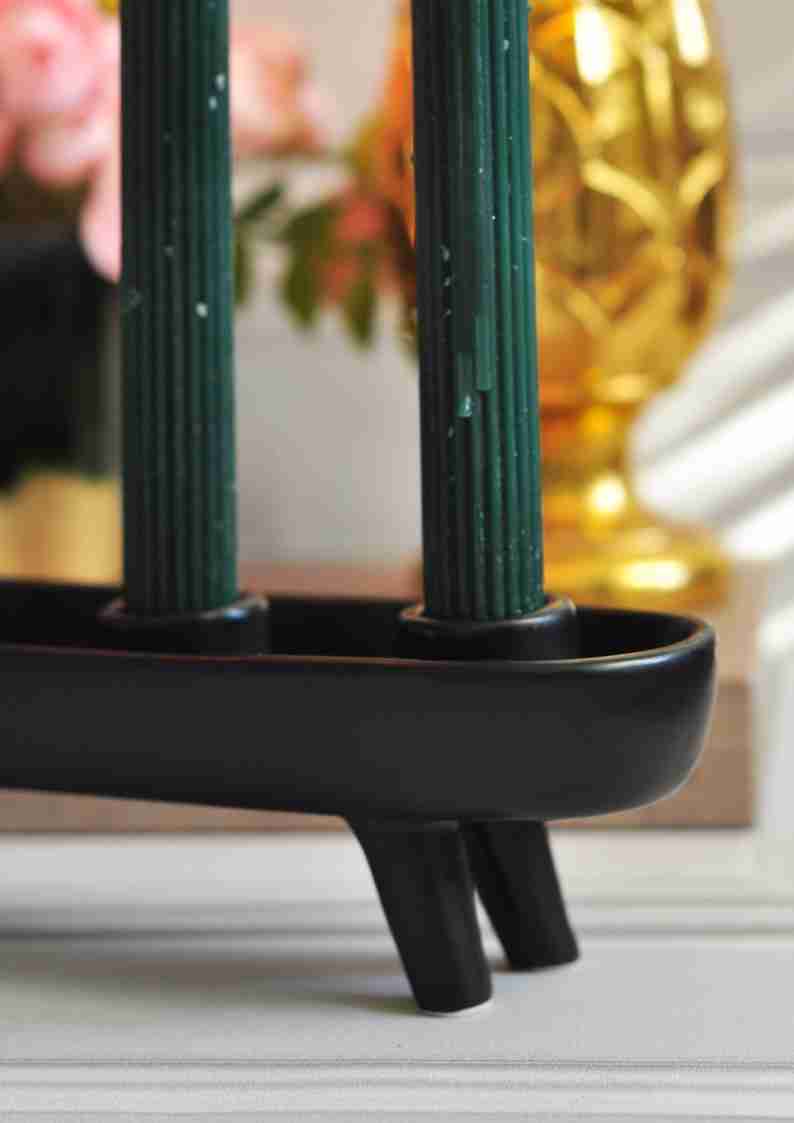 Świecznik kamionkowy na cztery świece w kolorze czarnym to doskonały wybór dla osób ceniących sobie elegancję i subtelność w aranżacji wnętrz. Dodaje uroku każdemu pomieszczeniu, tworząc przytulną atmosferę przy świetle świec.