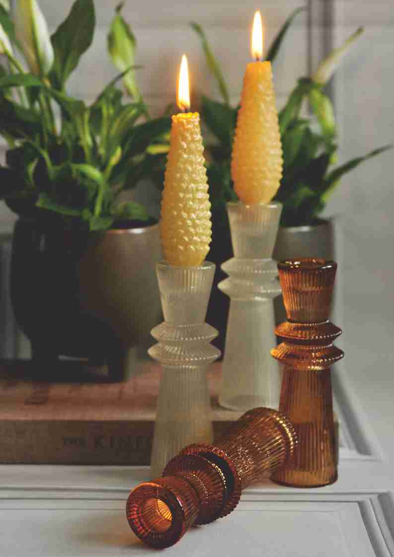 Szklany świecznik Amber – bursztynowe światło z nutą elegancji