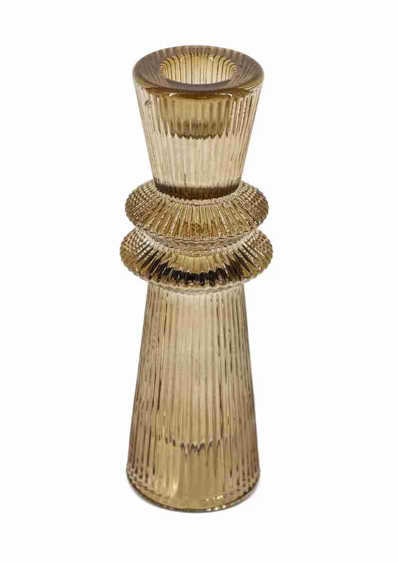 Wysoki świecznik szklany Amber z bursztynowego szkła – karbowany wzór