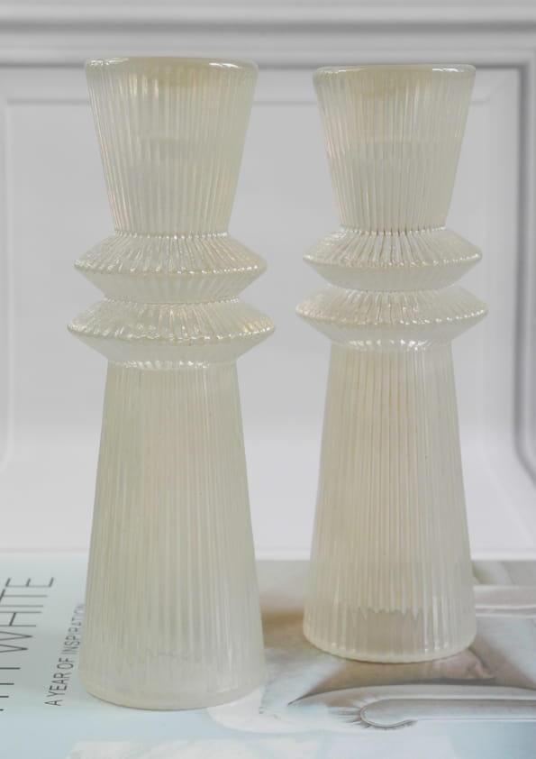 Wysoki świecznik ze szkła mlecznego – subtelny akcent do nowoczesnych wnętrz
