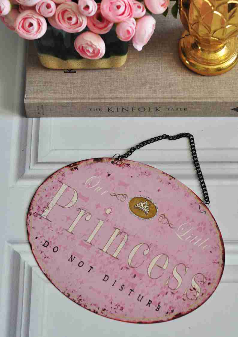 Szyld metalowy na łańcuszku - dekoracja na drzwi do pokoju dziecka PRINCESS