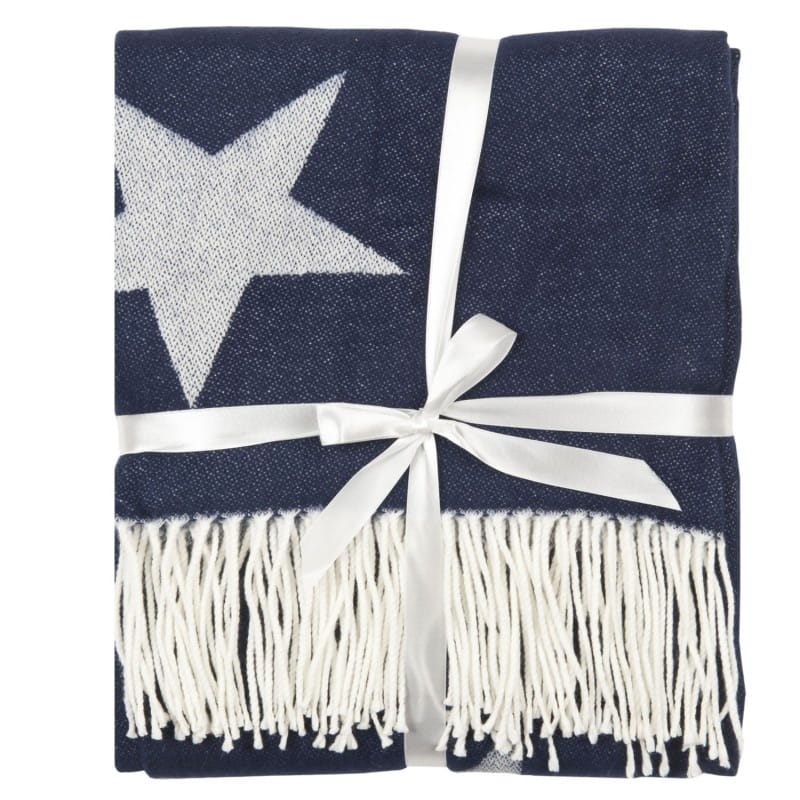 Koc granatowy w białe gwiazdki – stylowy akcent dla Twojego mieszkania