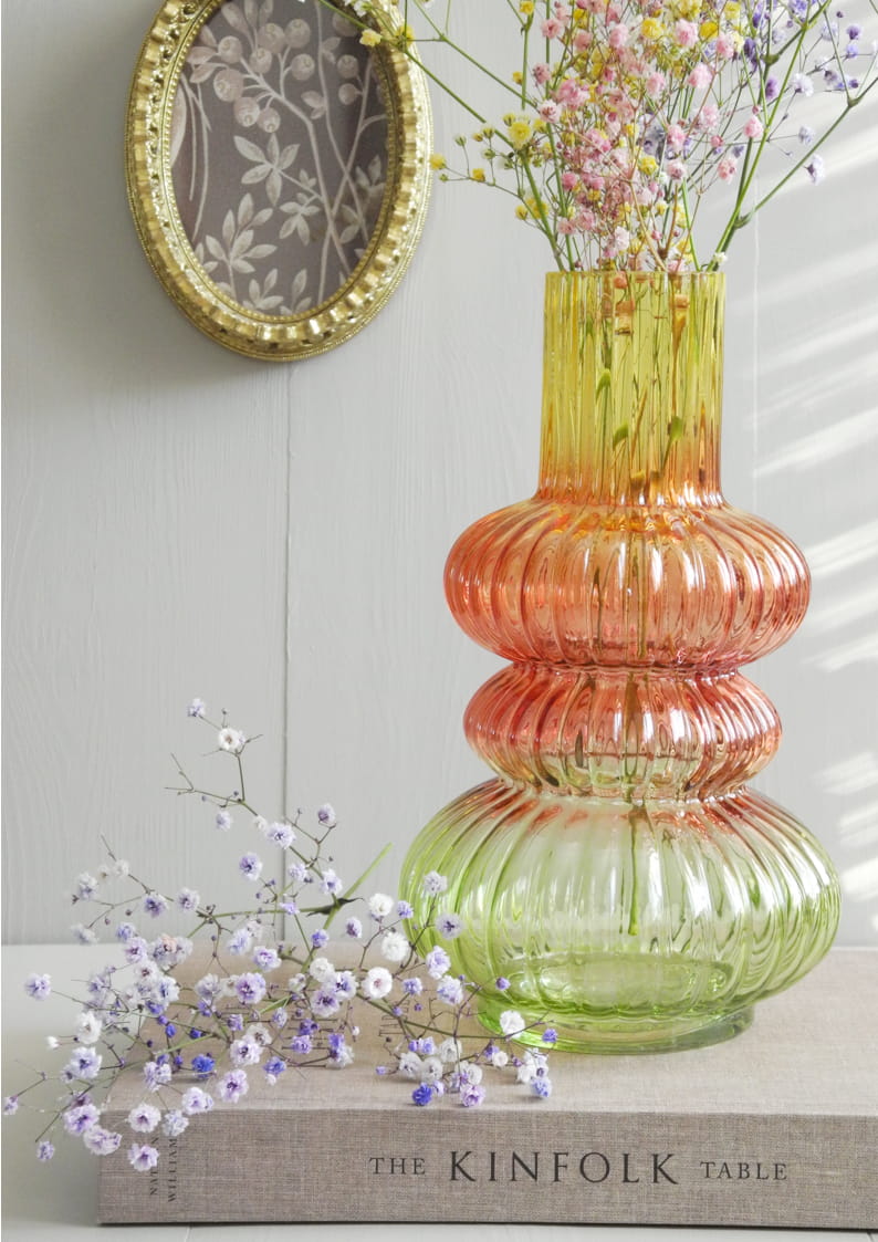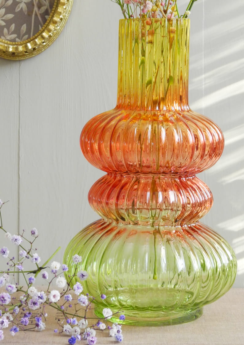 Trzy kolory, jedno szkło i mnóstwo światła – ten wazon ombre ożywi każdą przestrzeń jak promień słońca po deszczu.